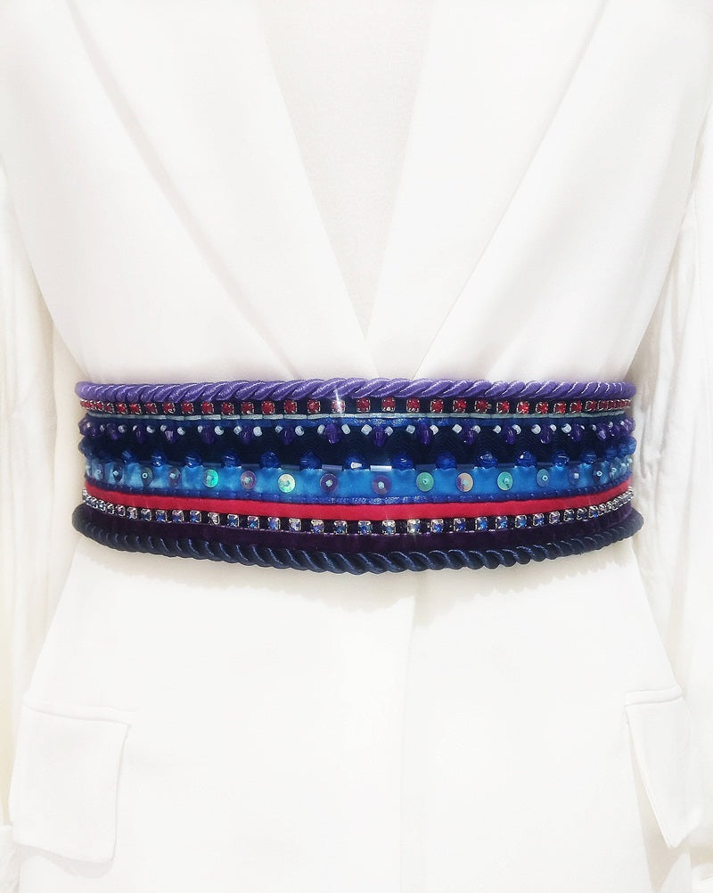 Tocado Azul Royal con Flores y Pluma de Faisán