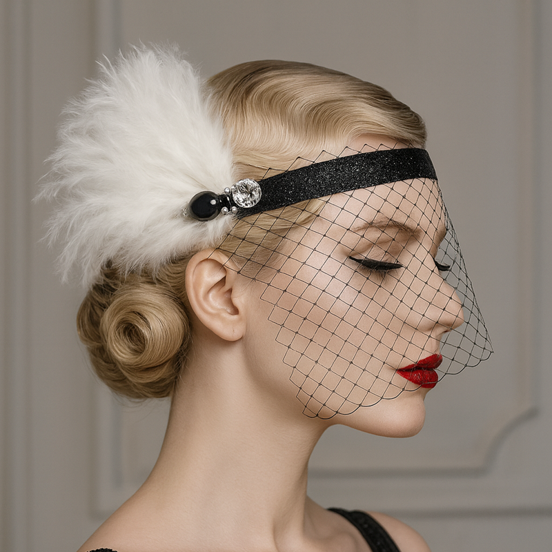 Tocado de Novia con Plumas, Perlas y Cristal