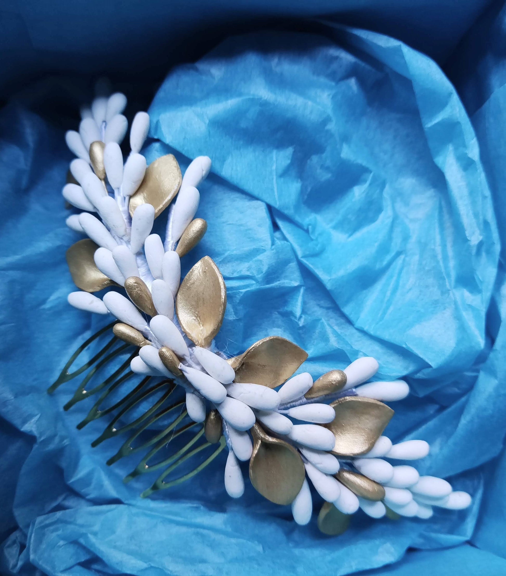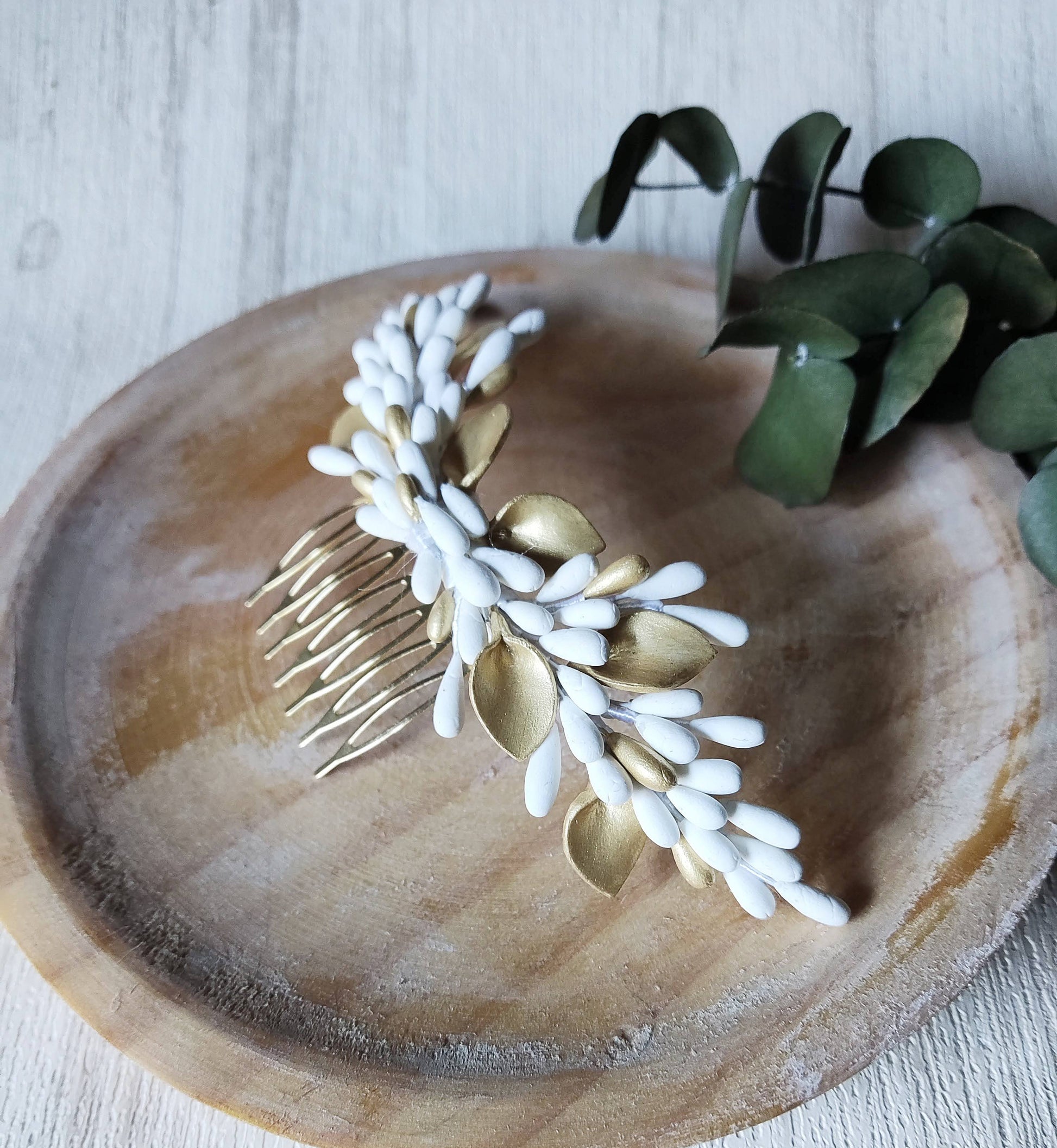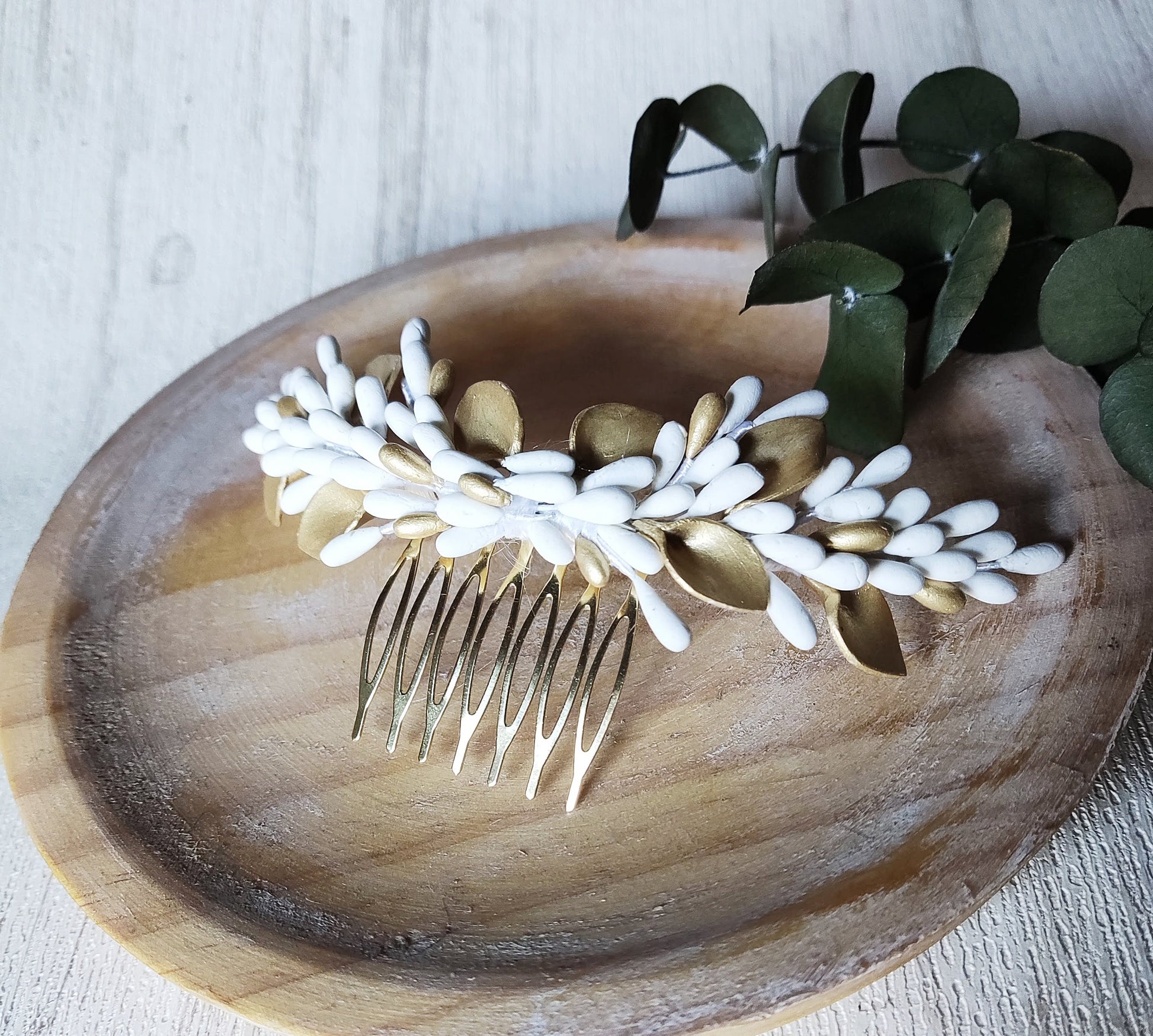 This small handcrafted hair comb brings an original, elegant, and romantic touch to your bridal or guest hairstyle.